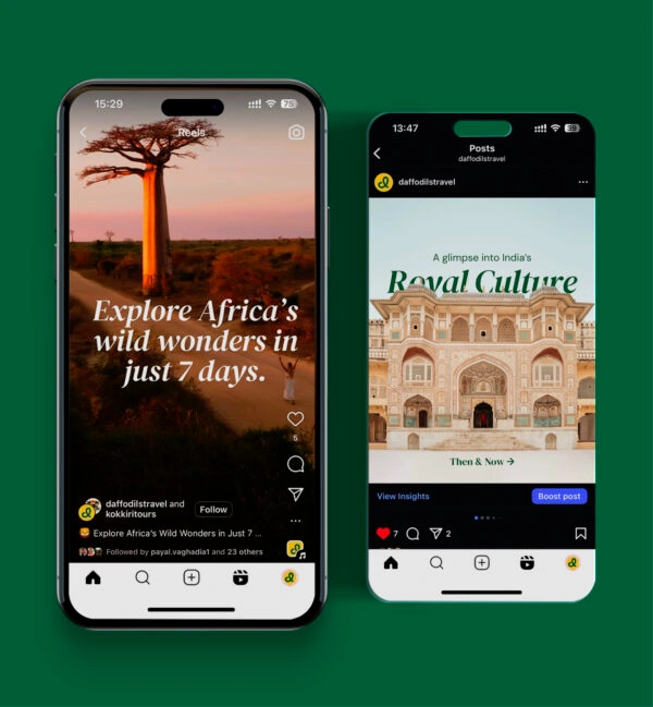 - Integrated Reels, posts, and carousels showcasing real journeys and aspirational destinations.